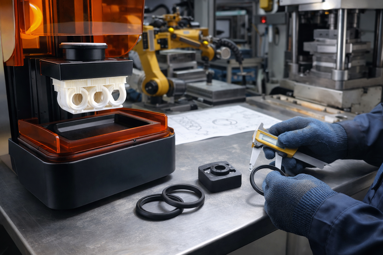 Geniş ürün portföyümüz ve esnek üretim yapımız sayesinde; O-ring, conta, keçe, körük, titreşim takozları, kaplin lastikleri ve özel tasarım kauçuk parçaları müşteri ihtiyaçlarına göre şekillendiriyoruz. Teknik çiziminize veya numunenize özel, düşük adetli ve esnek üretim imkânı sunuyoruz. 3D yazıcı destekli prototip ve numune çalışmalarımız sayesinde seri üretim öncesinde doğru çözümleri hızlıca geliştiriyoruz.